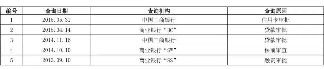 征信查询记录示例: