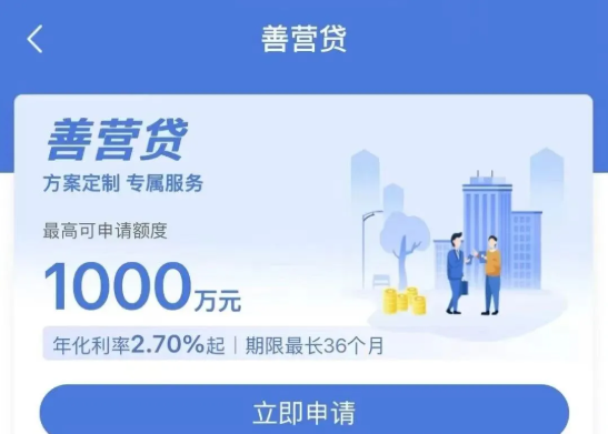 善营贷:普惠经营首选,利率最低2.7%起、纯信用、线上快办